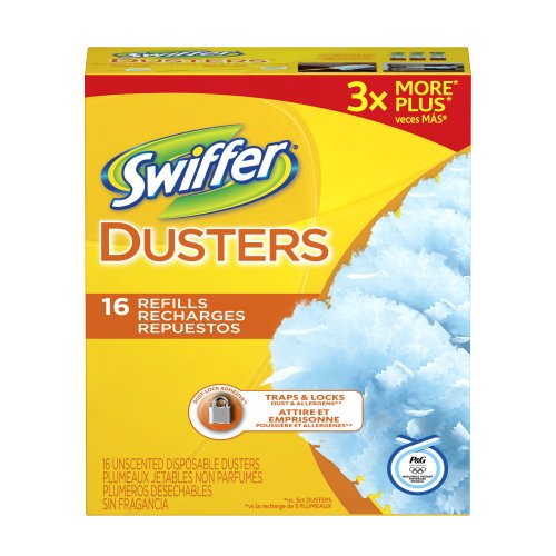 Swiffer Dusters trap and lock dust and allergens with thousands of fluffy fibers. That's because each fluffy, flexible fiber features Dust Lock Adhesive that traps and locks dust away for good. The unique fluffy fibers can also change shape to get into nooks and crannies and dust virtually any surface for a great clean. Common inanimate allergens from cat and dog dander and dust mite matter.